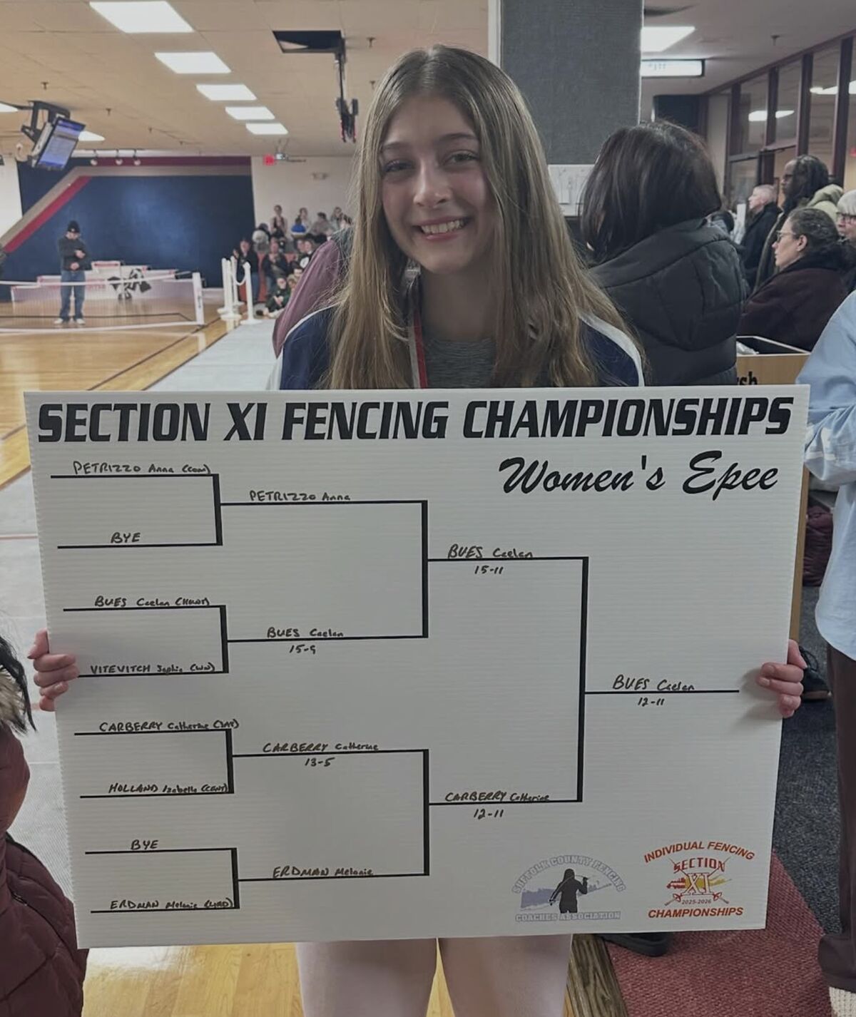 Congratulations to Caelan Bues on winning the Suffolk County Championship in girls epee.  On the boys' side,  Franklin Rathbun placed 3rd in boys epee! Caelan and Franklin qualified for the All-Star meet vs Nassau on February 27th. Congratulations, Caelan and Franklin! Way to go, Tornadoes!
